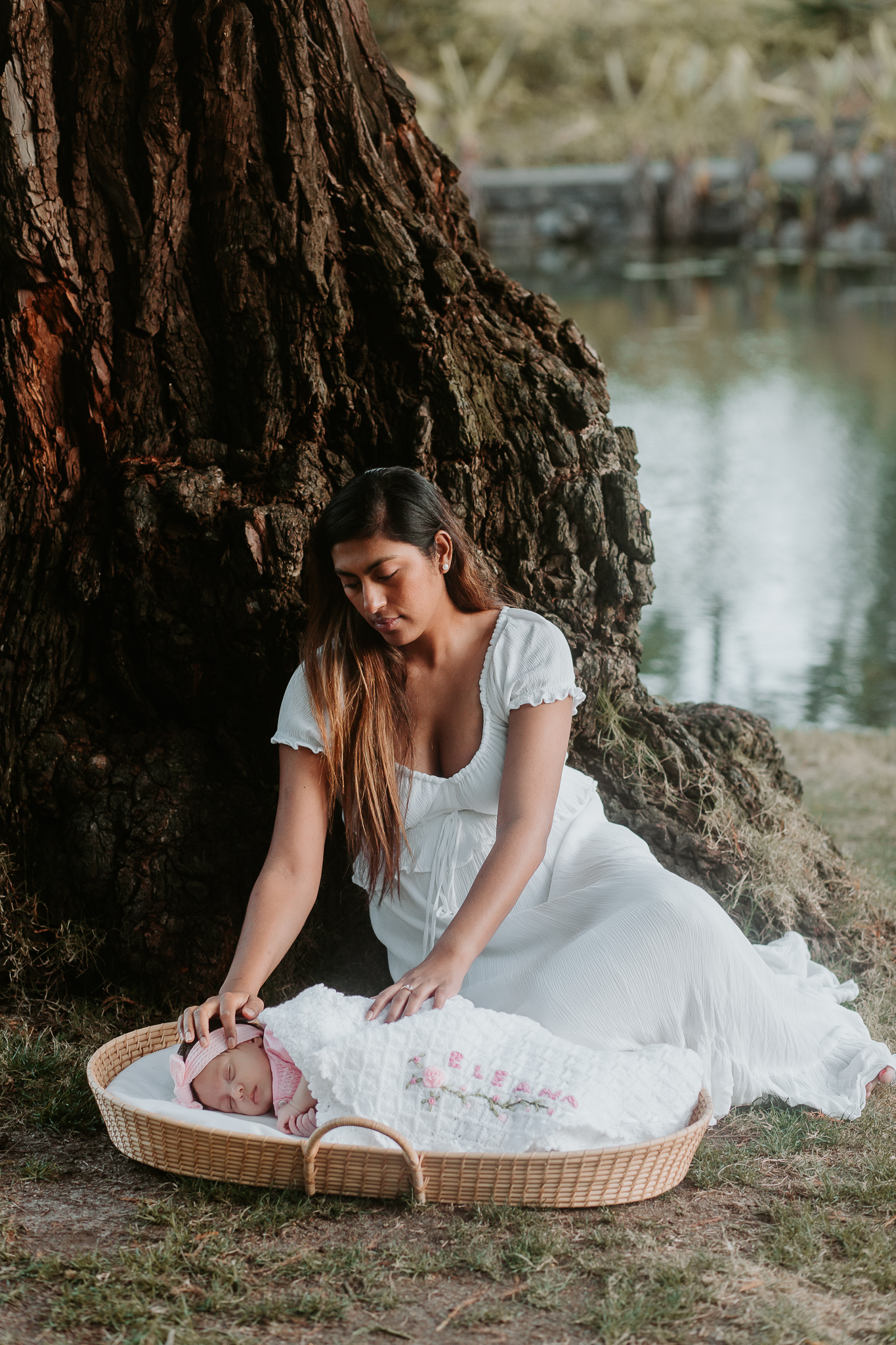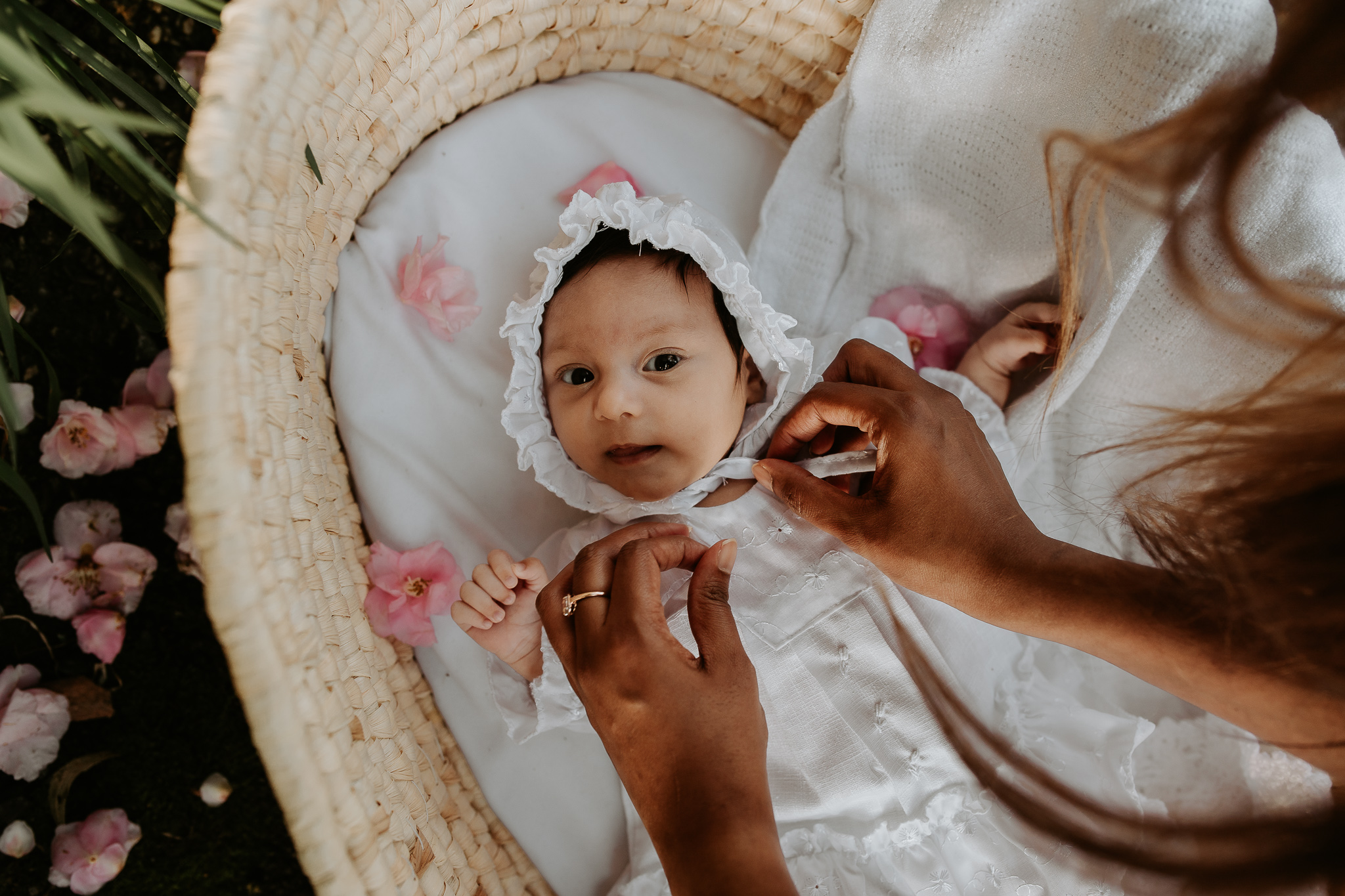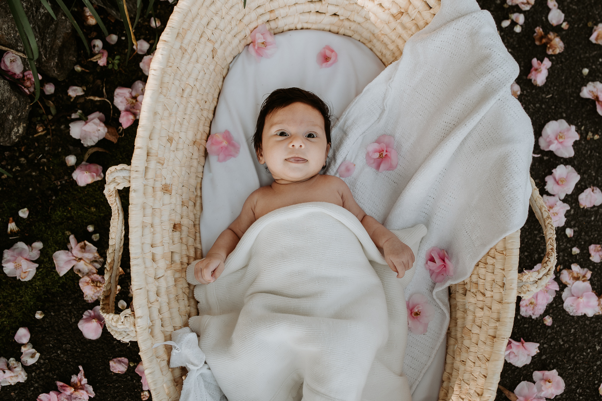 This outdoor newborn session took place at the Mount Coot-tha Botanical Gardens. It’s not a place I typically think of when I think of newborn shoots, but it was such a picture perfect backdrop. Eleana looked like a doll nestled amongst the flowers in the moses basket. Her mum Mila was also so generous to gift me the changing basket as she said it was totally impractical but would look great in photos – and she wasn’t wrong!