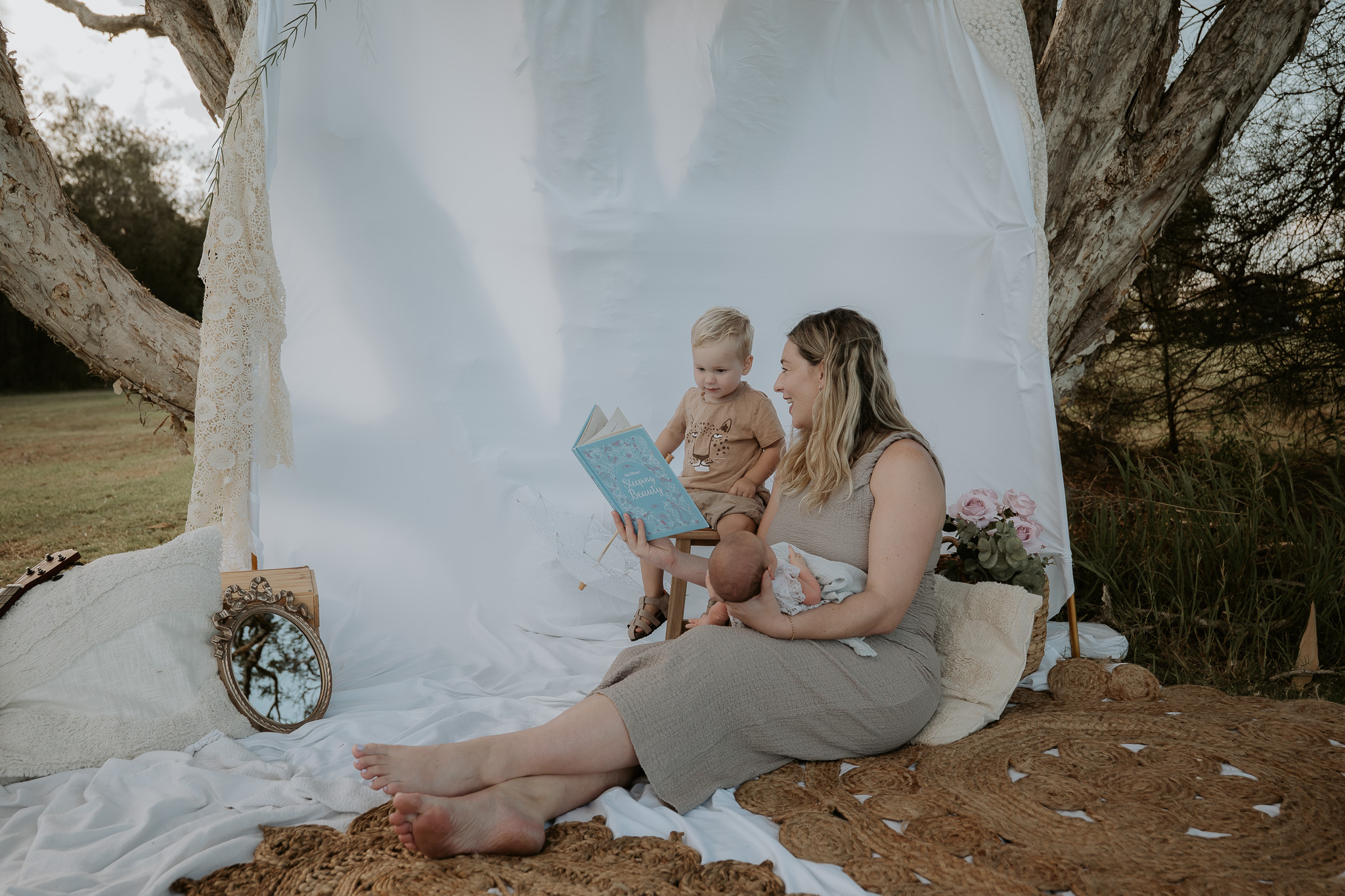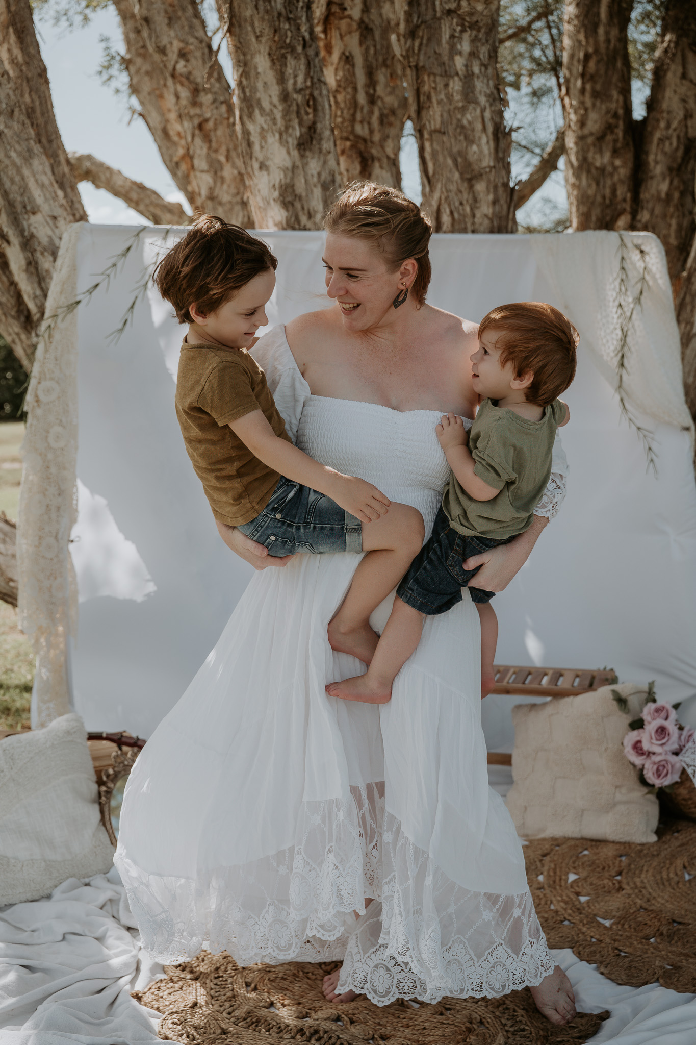 Set in a beautiful park with a fabric backdrop, touches of lace and soft florals, these sessions are designed to capture the sweet moments of motherhood.
